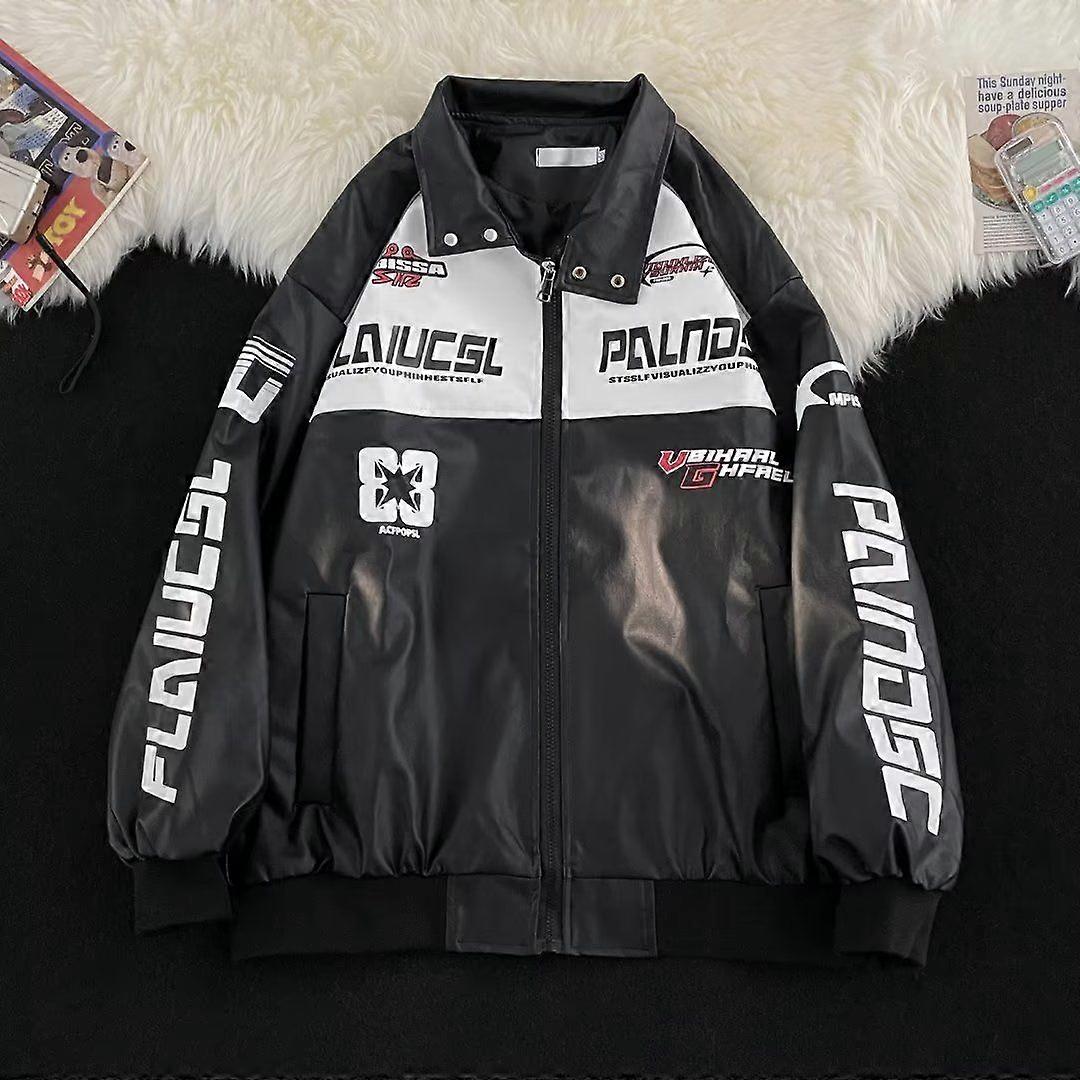 Oversize Motorcycle Racing Uniform Baseball Uniform Jacket Men's And Women's Autumn And Winter Trendy Brand Loose Pu Leather Jacket Cotton Clothing