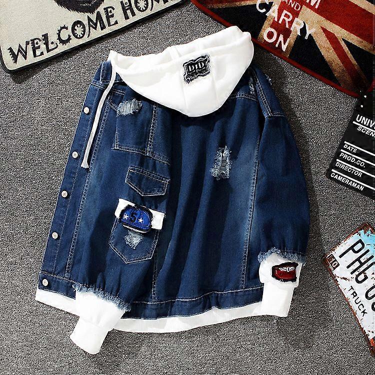 Men's Autumn Hooded Korean Style Denim Jacket Fashionable Slim-Fit Handsome Autumn And Winter Baseball Jacket All-Match Casual Clothes