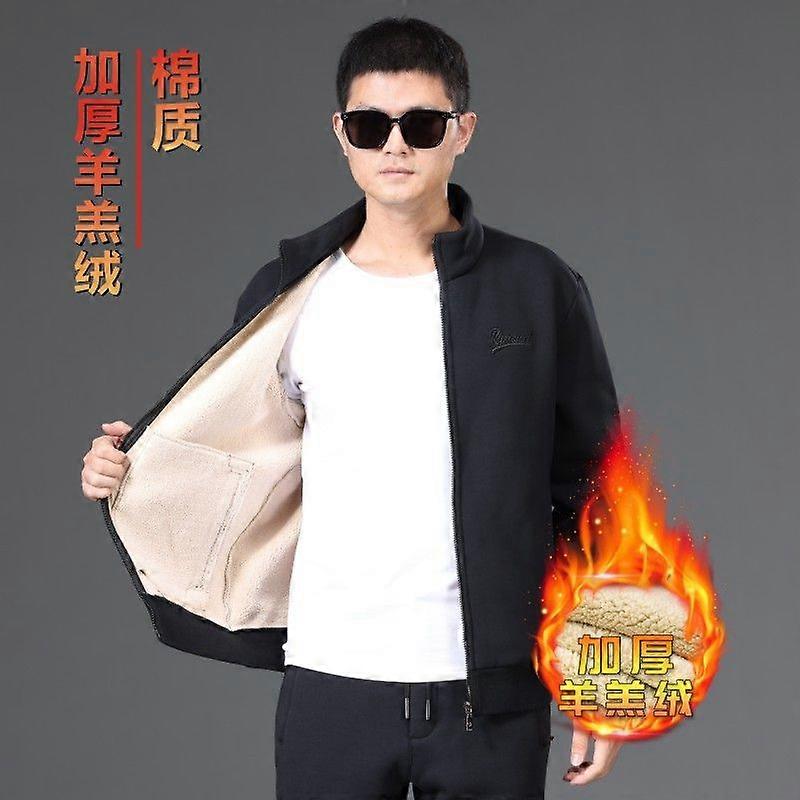 Lambskin Coat, Men's Winter Stand-Up Collar Jacket, Fleece Thickened, Loose, Large-Sized Warm Baseball Jacket, Men's Cotton-Padded Jacket 19