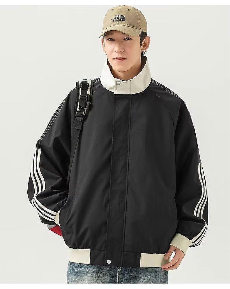 Striped Color-Blocking Jackets For Men's Spring And Autumn American Retro Vibe Baseball Jackets Are Loose, Trendy, Laid-Back And Cool