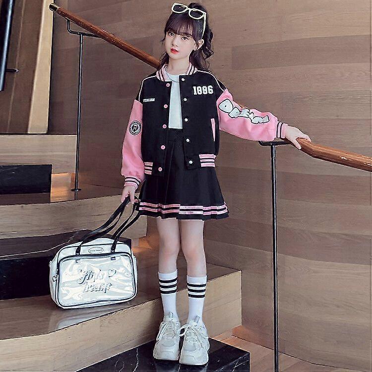 Girls' School Style Suit Skirt, Spring And Autumn Kids' Stylish Parent-Child Coat, Girls' Baseball Jacket Two-Piece Set