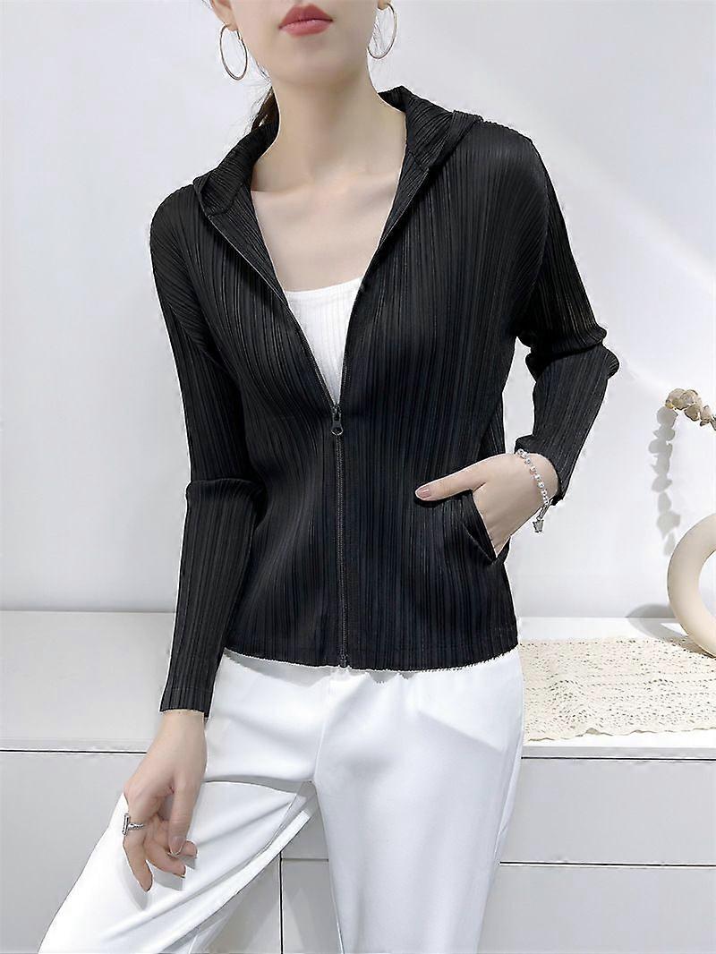 Pleated Zipper Shirt Women's Slim-Fit Slimming Comfortable Casual Spring And Autumn Coat Hoodie Pleated Top Women's Niche
