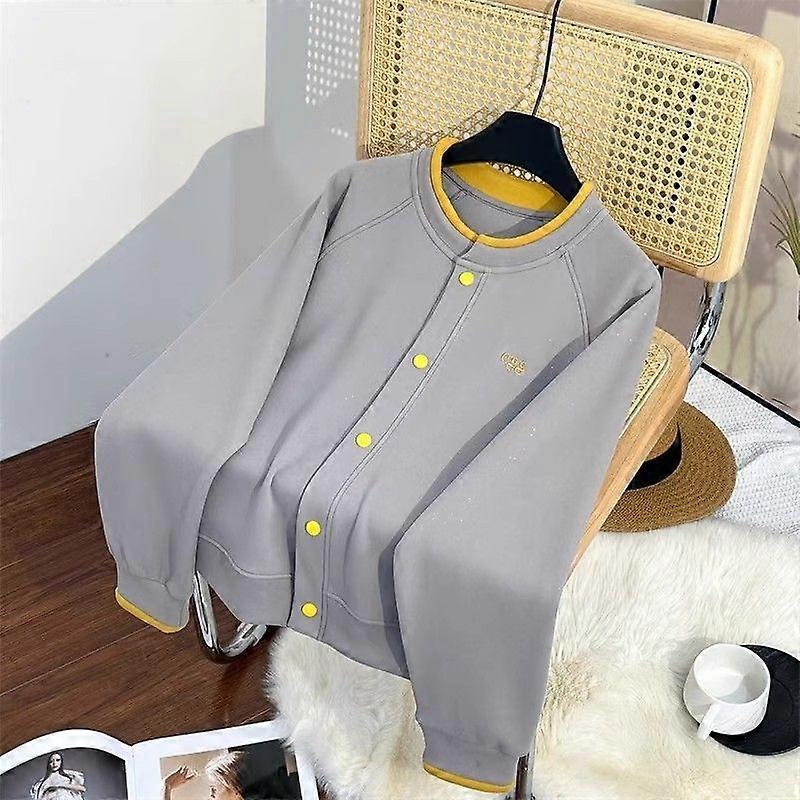 Spring And Autumn Embroidered Open-Neck Baseball Jacket For Women-Versatile Collared Plaid Hoodie With Easy Pairing