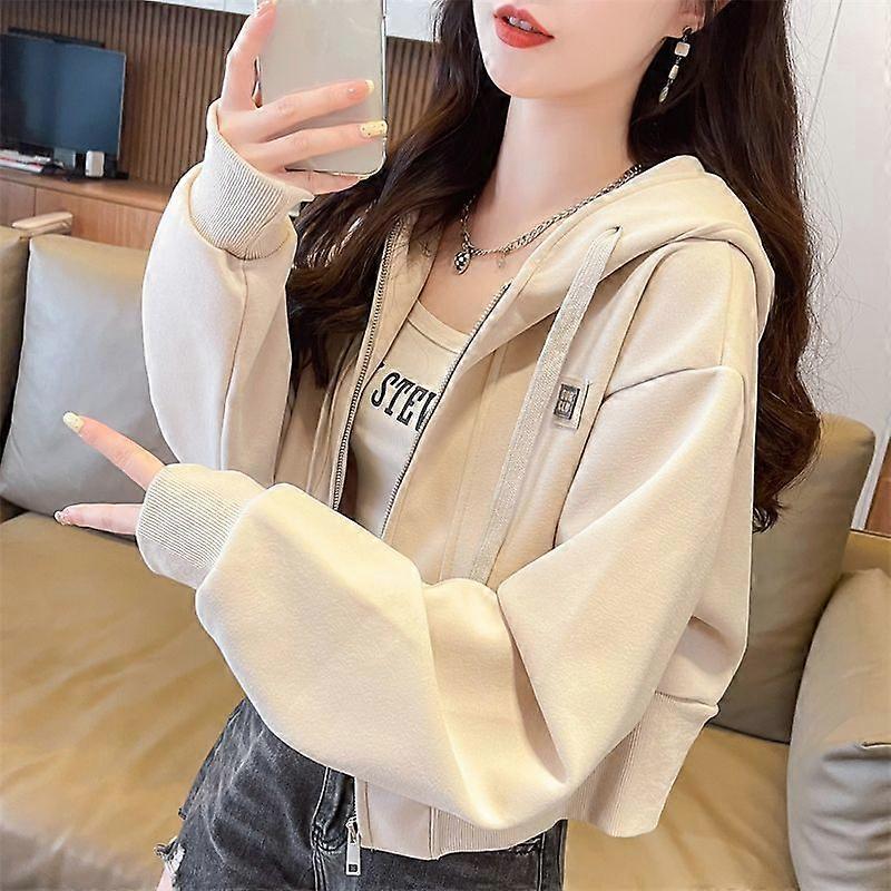Early Spring Hooded Jacket For Women, Short Style, Loose, Fashionable And Zipped Casual Baseball Jacket For Autumn And Winter