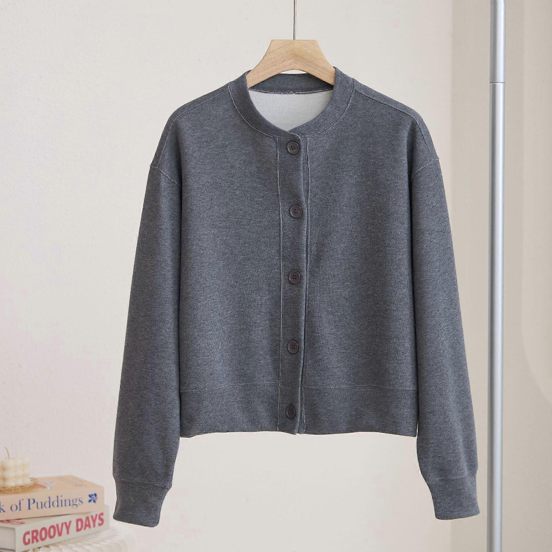 Early Autumn Cardigan, Light Jacket, Long-Sleeved Sweatshirt, Korean-Style Casual School Style Short Top, Women's Baseball Jacket