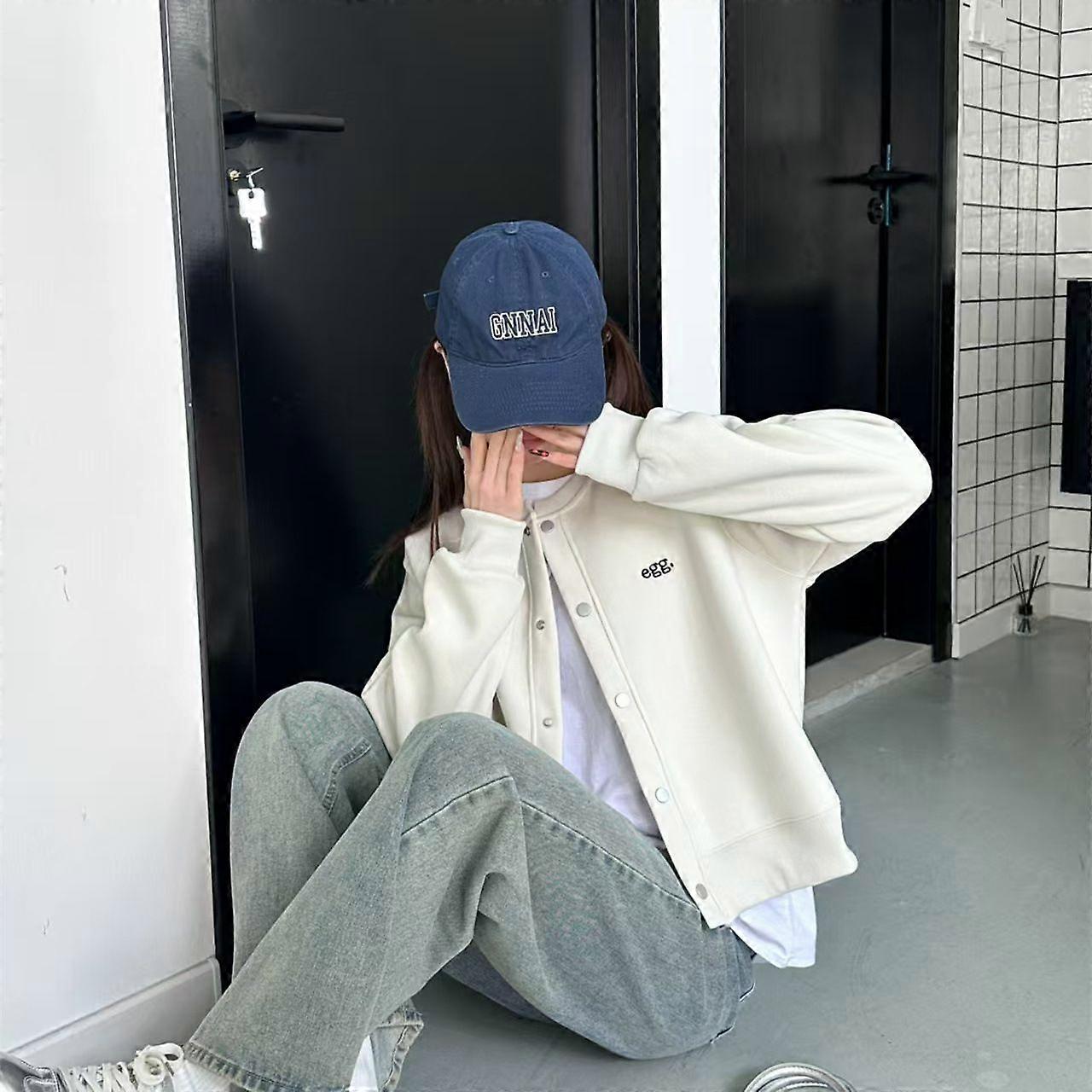 Spring Yellow Cardigan Top Coat Short Long-Sleeved Baseball Uniform Women's Korean-Style Egg Home Embroidered Sweater