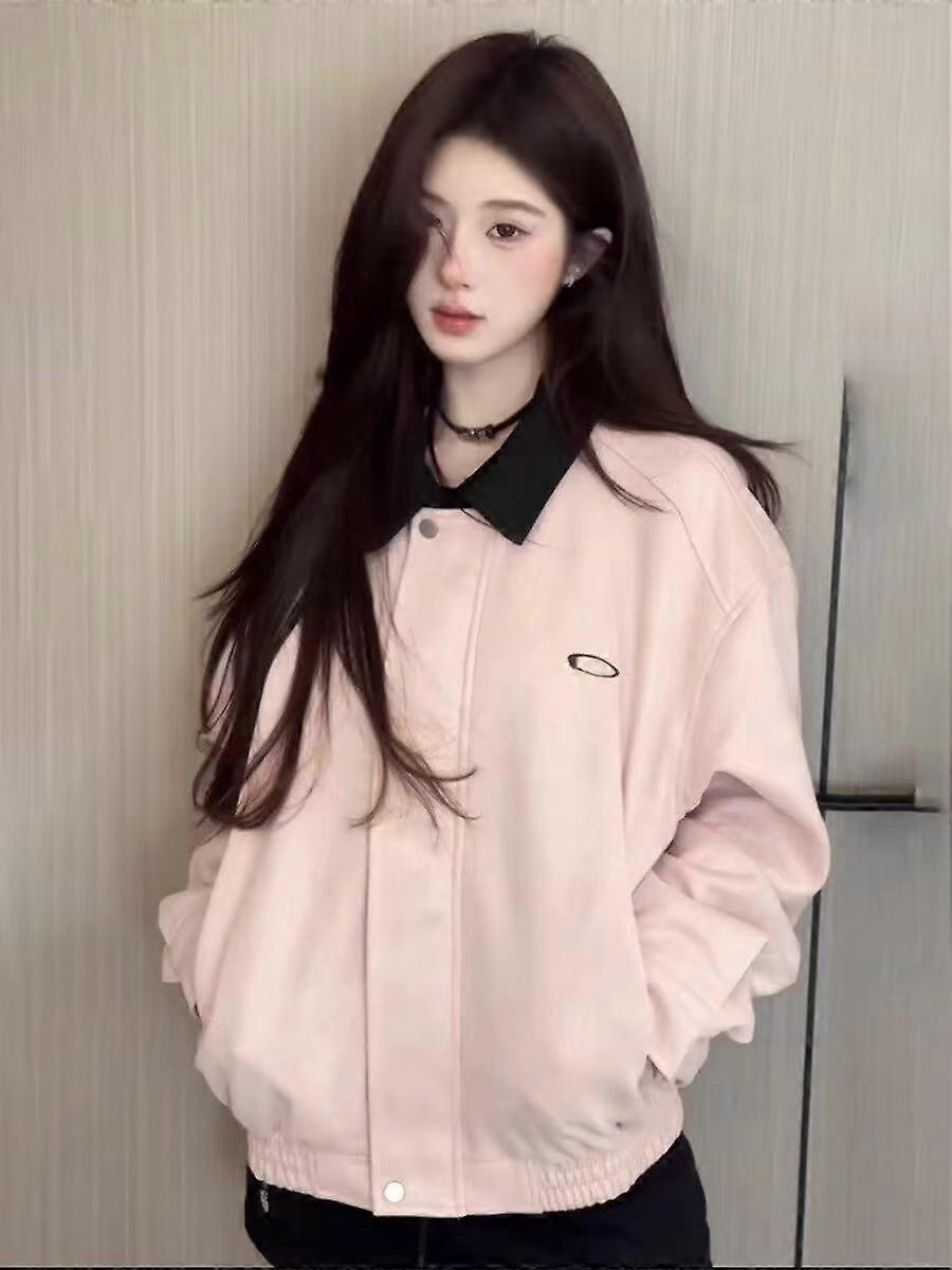 Factory Direct Delivery Pink Baseball Jacket For Women, American Street Loose Suede Lapel Flight Jacket