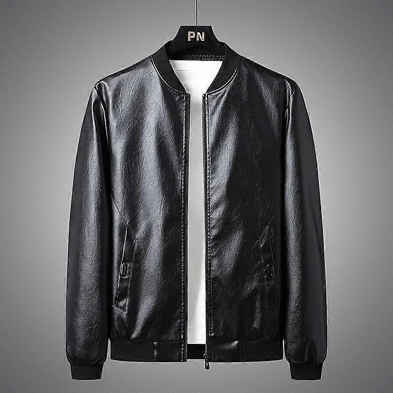 Men's V-Neck Leather Jacket In Solid Color For Spring And Autumn, Loose And Versatile, Casual And Trendy Plus-Size Coat, Baseball Neck Leather Jacket,