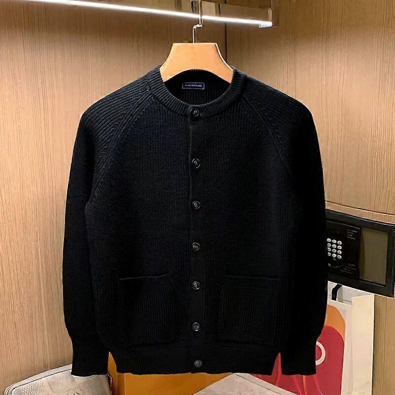 European Goods Thickened Outer Wear Knitwear Men's Thermal Top Winter Japanese-Style Retro Round Neck Sweater Men's Cardigan Jacket