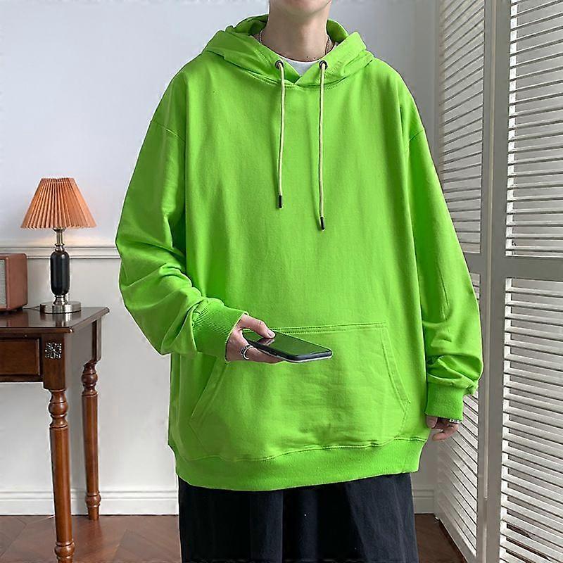 Pure Cotton Hooded Sweatshirt Men's Versatile High Street Hong Kong Style Loose Spring And Autumn Fashion Brand Solid Color Top