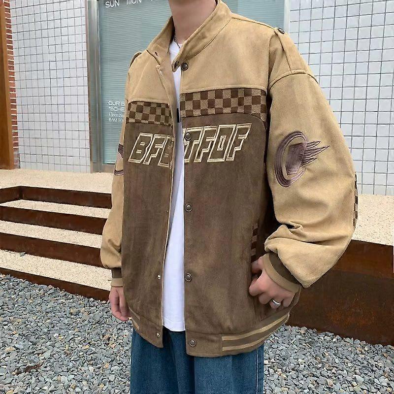 Suede Jacket Men's Spring And Autumn American Retro Fashion Brand Hiphop Baseball Uniform Design Sense Niche Ruffle Handsome Jacket