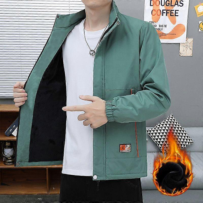 Coat Men's Spring And Autumn Jacket Men's Fleece-Lined Thickened Green Trendy Casual Stand Collar Top Men's Clothing