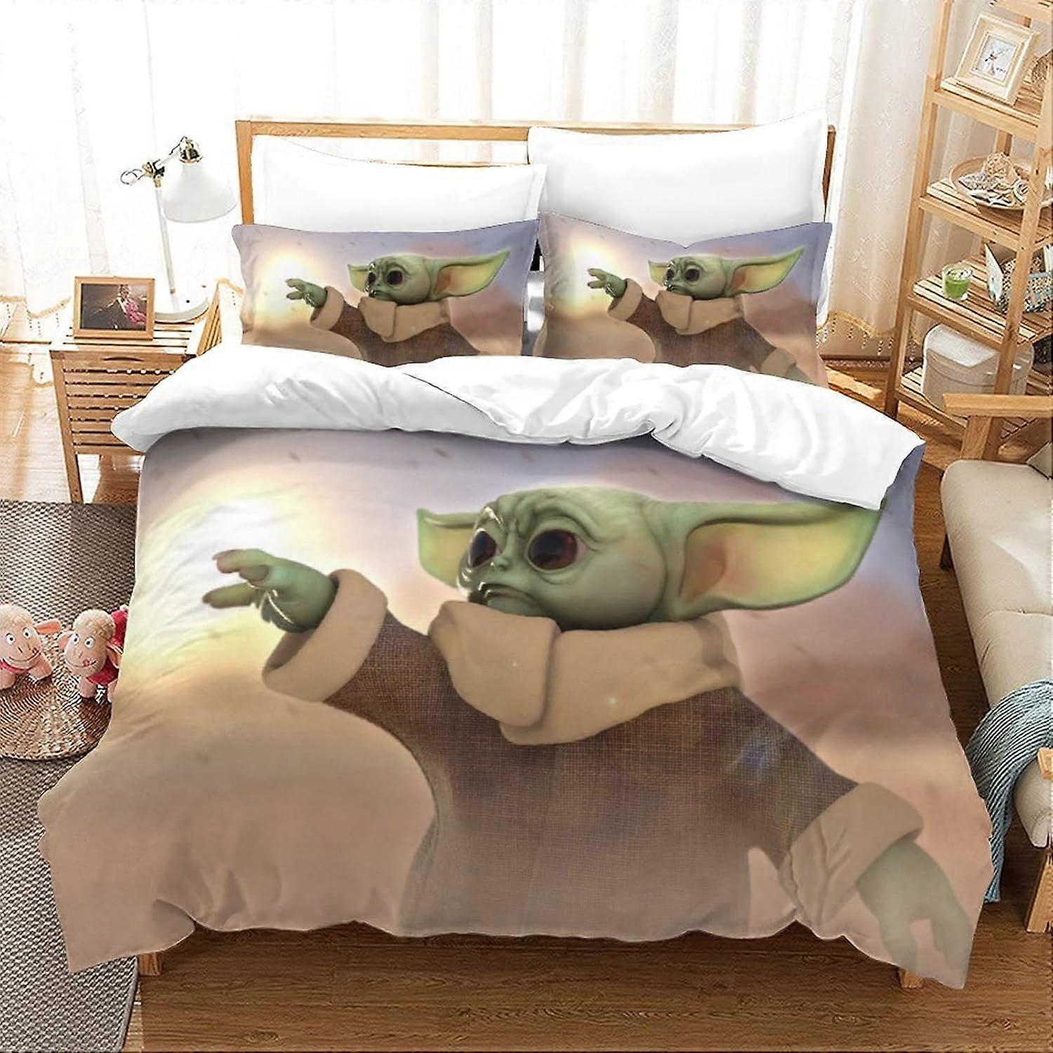 PIN21 3D Printed The Mandalorian Duvet Cover Set with Pillow Cases Baby Yoda Quilt Cover Bedding Set,with Zipper Closure,3pcs,for Childrens And Adults