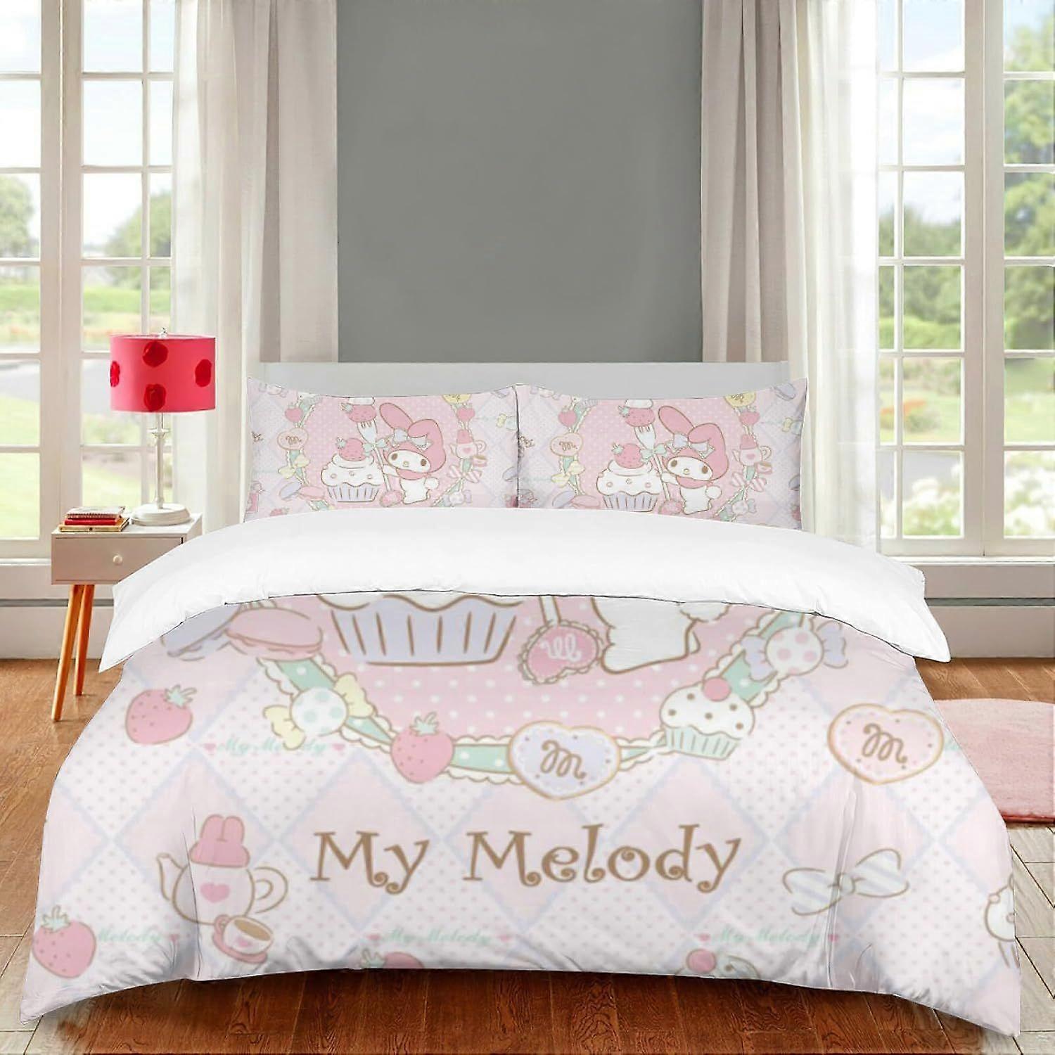 PIN31 Kawaii Bunny Comforter King Size,Melody Comforter Set for Kids Teens Girls Boys,3pcs Bedding Set Printed with 2 Pillowcases 1 Duvet Cover,Soft a