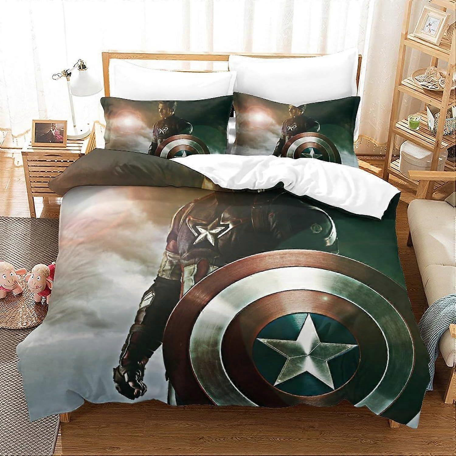PIN194 Captain America Duvet Cover Set Kids Adults Bedroom Marvel Comics 3D De Sign Duvet 3 Piece Set Zipper Design Soft Microfiber Breathable Bed wit