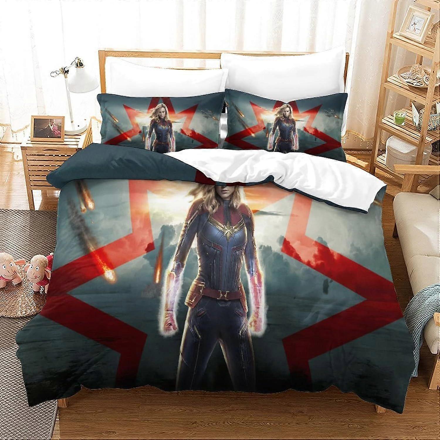 PIN173 Duvet Cover Set Captain Marvel Bedding Set Movie Poster Bedspread Microfiber Bedding Cover Comforter Double200x200cm
