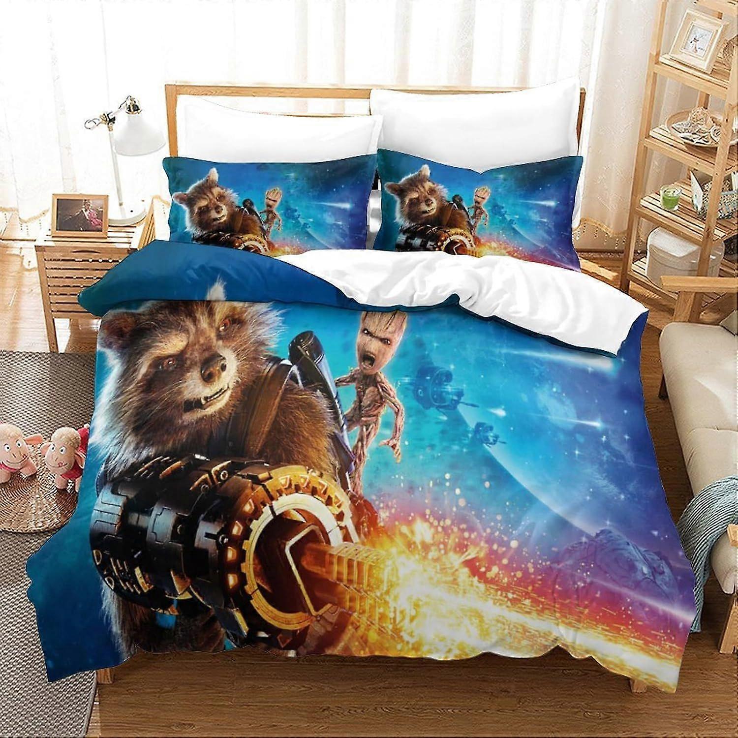 PIN231 Guardians of The Galaxy 3d Duvet Cover Set Marvel Animation Printed Bedding QuiltCover with Zipper Closure, 3 Pieces with Pillowcase, Soft Ligh