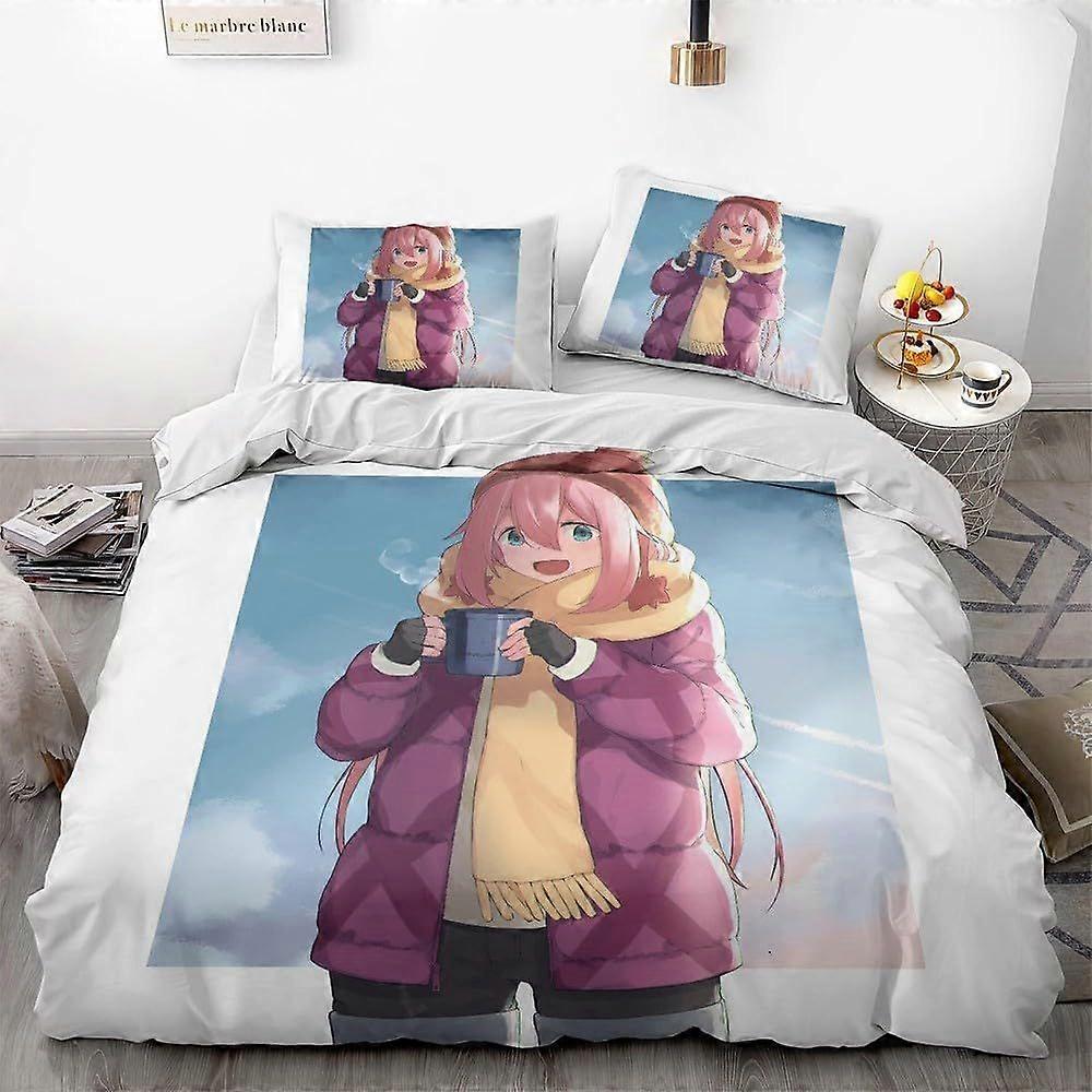 PIN283 Leisure Camp Anime Camping Nadeshiko Rin Duvet Cover Soft 3D Printed Bedding Set with Comforter Cover 3 Piece Set Includes 2 Pillowcases and 1
