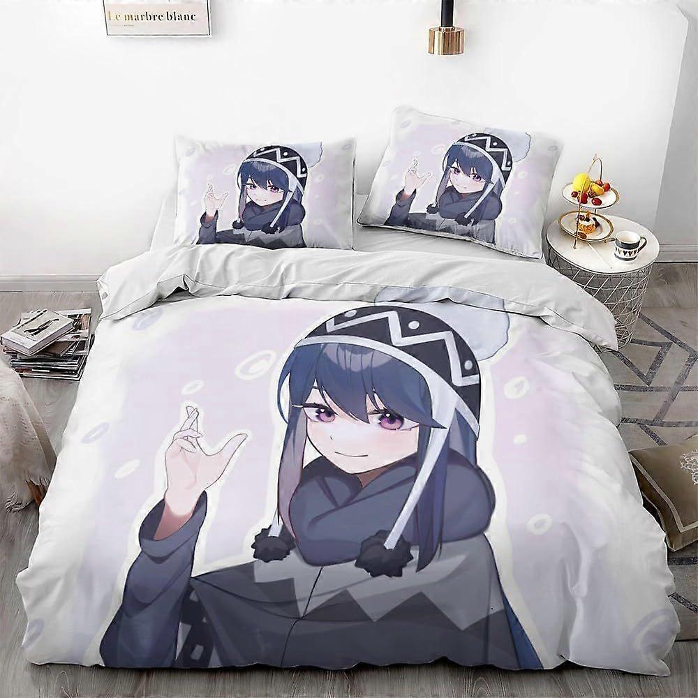 PIN273 Leisure Camp Anime Camping Nadeshiko Rin Duvet Cover Soft 3D Printed Bedding Set with Comforter Cover 3 Piece Set Includes 2 Pillowcases and 1