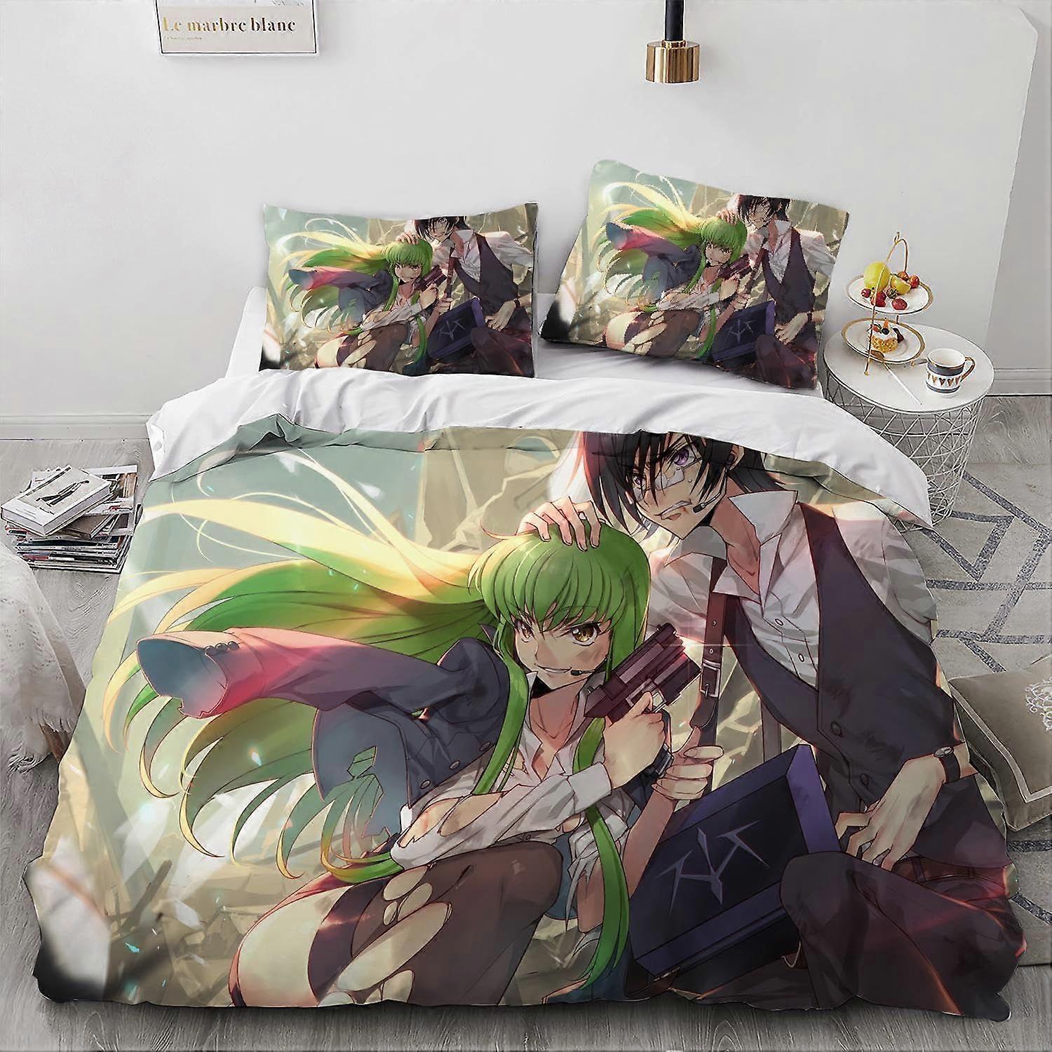 PIN337 Geass Anime Lelouch fo The Defiance Duvet Cover Set, 100% Microfiber Bedding Set, Skin-Friendly 3 Piece Comforter Cover Set for a Comfortable S