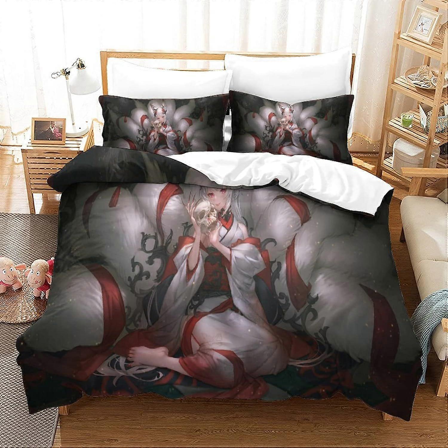 PIN413 Fox Girl Duvet Cover Microfiber Bedding Set,3D Print Anime Girls Quilt Cover&Pillowcase, With Zipper Closure,Winter Soft Cover for Men Woman Si