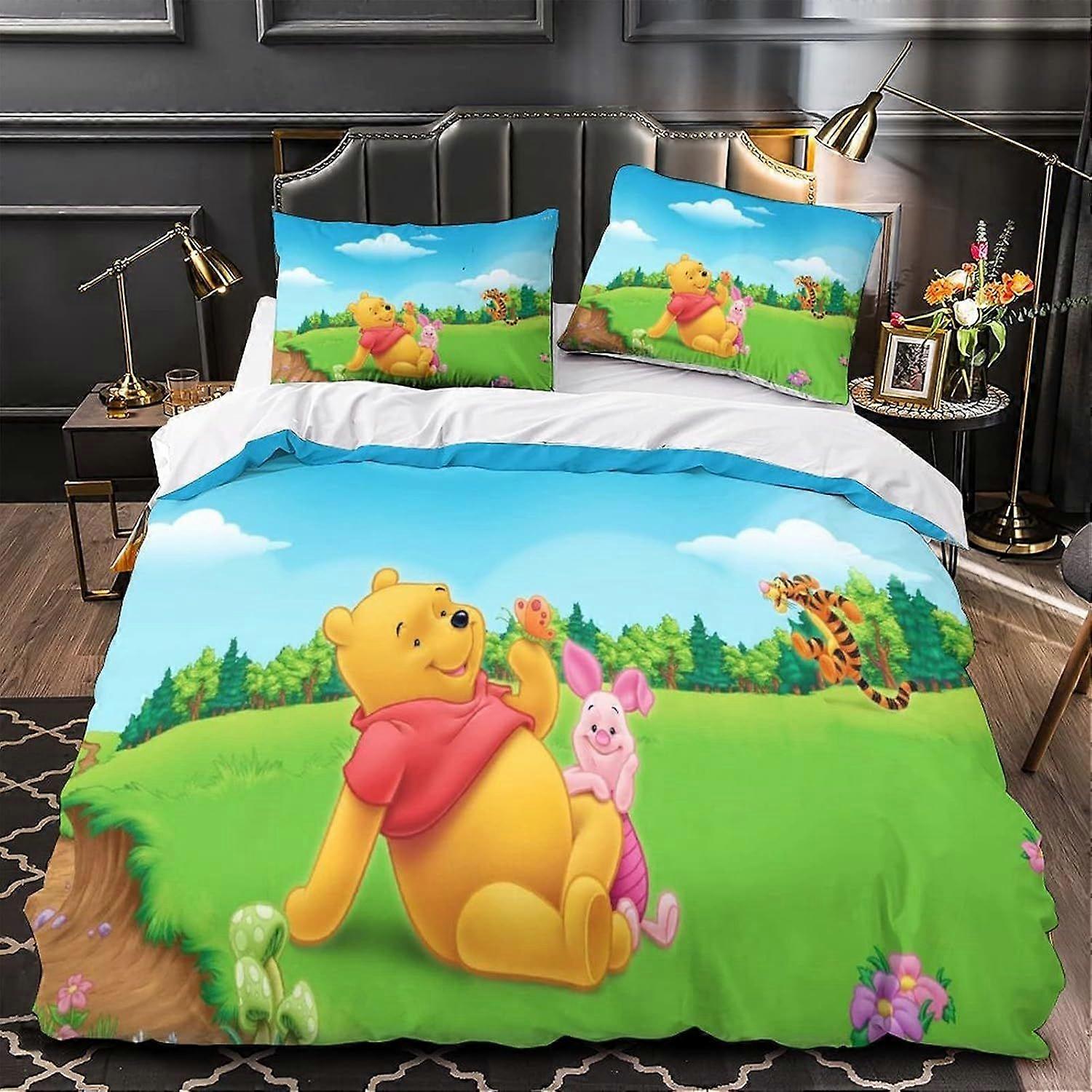 PIN511 Duvet Cover Anime Movie Bedding Set Winnie The Pooh Comforter Cover 3D Print for Kids Teens, Soft Quilt Bedroom Decor Bedspread Single140x200cm