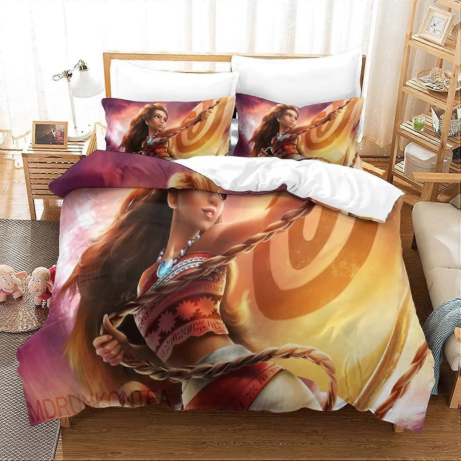 PIN594 Duvet Cover Set Moana Bedding Set Comforter Cover Cartoon Anime Movie for Kids Boys Girls Lightweight Microfiber Quilt King220x240cm
