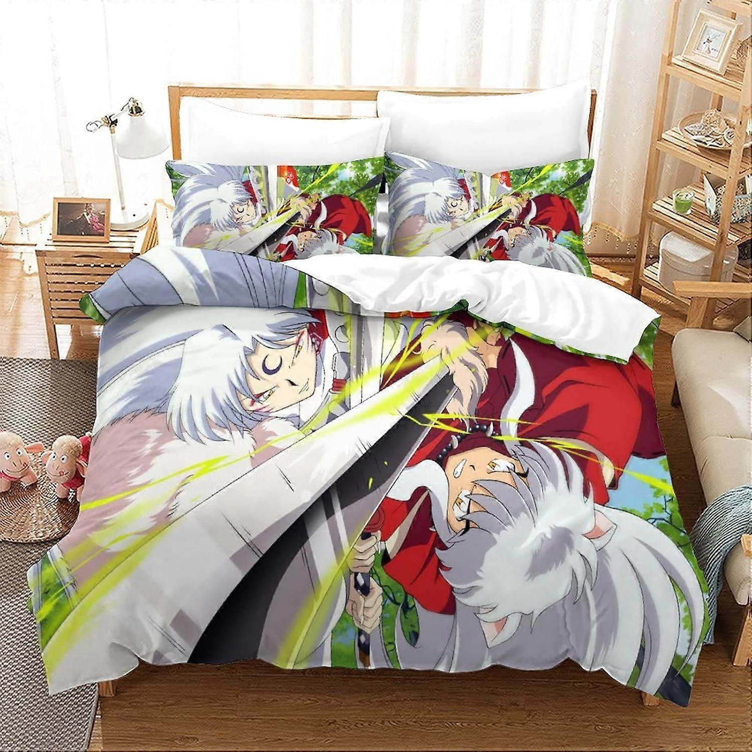PIN631 Duvet Cover Set Inuyasha Bedding Set Cartoon Anime Movies Bedspread Microfiber Bedding Cover Comforter Double200x200cm
