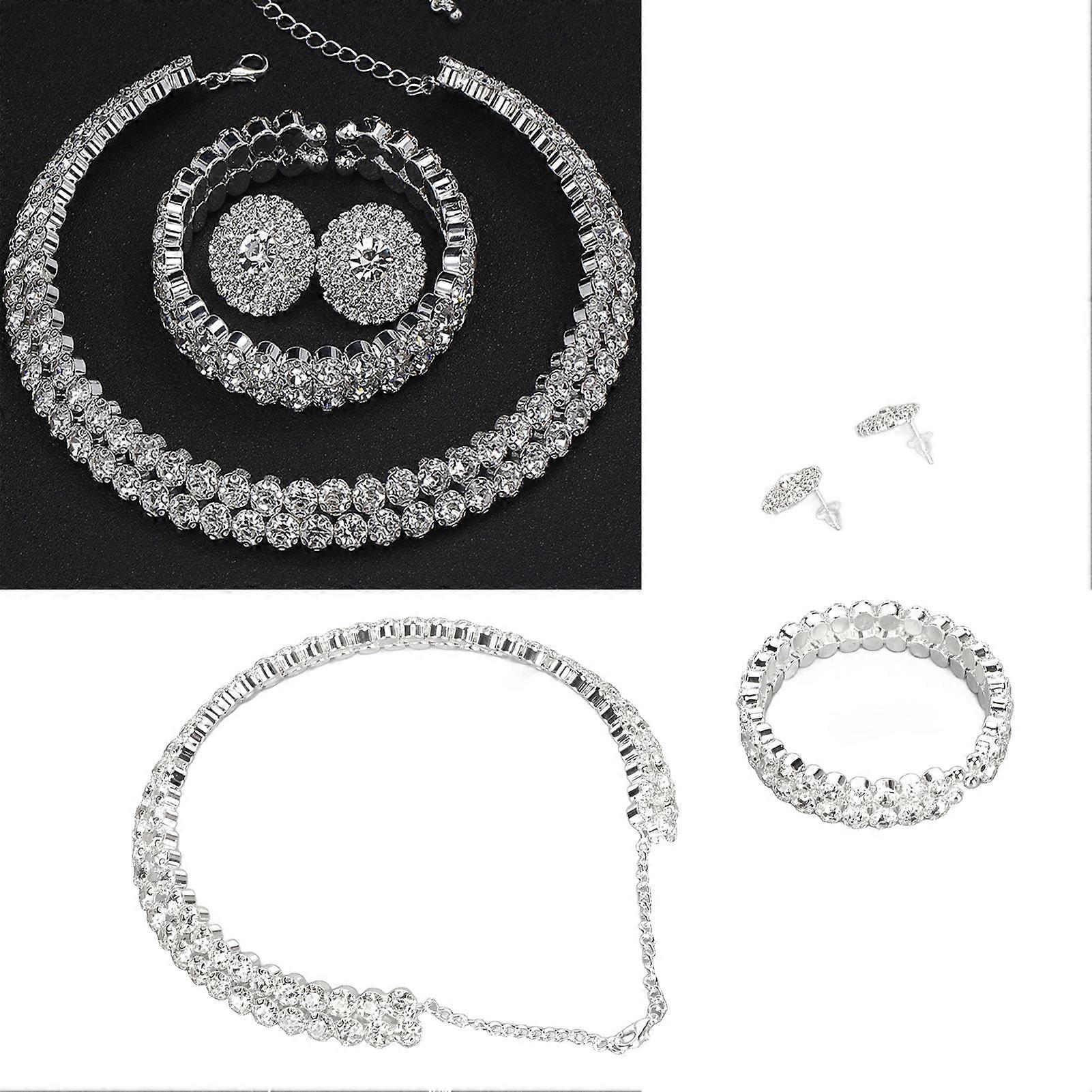 Stylish Silver Bridal Jewelry Set Rhinestone Necklace Bracelet Earrings
