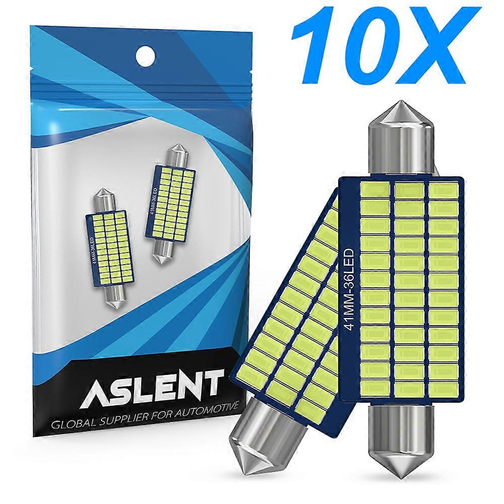 Specifications<br>Hign-concerned Chemical:None<br>Size:41 mm<br>For Vehicle Brands/Model:Universal<br>Voltage:12V<br>Interface Type:Festoon-31mm<br>Lumens:700LM<br>Item Weight:30g<br>Model Name:SJ-3014-LB<br>Wattage:1.5W<br>Brand Name:ASLENT<br>Origin:Mainland China<br>Item Type:Dome Light<br>Voltage:DC12V<br>Feature 1:License Plate Light<br>Feature 2:Reading Wedge Light Signal Lamp<br>Feature 3:car Interior Atmosphere light bulbs<br>Application:License plate light, Dashboard light, Clearance light,<br>Socket :<br>Festoon C10W C5W 31/36/39/41mm<br>Voltage: DC12V <br>Power: 1.5W <br>Lumens: 700LM <br>Number of LEDs: 3014 SMD <br>Color: White 6000K 6500K/Warm White/ice blue <br>Material: LED+aluminium <br>Application: Car, motorcycle, truck, SUV, ATV, etc. <br>Heat Dissipation Theory : Aviation aluminum 6063 <br>Waterproof: IP67 <br>Working temperature: -40°C~+80°C <br>System Lifespan:80000 hours <br>Usage:License plate light, Dashboard light, Clearance light, Reading light, parking light, door light, trunk light, dome light, interior lighting.<br>Package: 10Pcs LED Bulbs<br>Note: <br>This bulb is Canbus Error Free for 95%+ vechiles system, but the load resistor (decoder) may needed for some of the Europe and American Vechiles. <br>For example: Volk *wagen, Me*cedes-B*nz, B*W, A*di, K*a, O*el, Re*ult, H*t, Lo*o, Sk*da, J*ep, D*dge, Ch*ysler, V*lvo, F*at, F*rd, S*at, Al*a R**eo and so on.