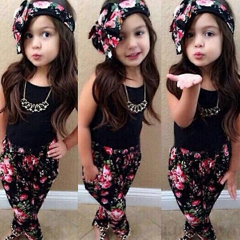 Kids Baby Girls Clothes Casual Vest + Pants Headband Outfits Set Summer Fashion