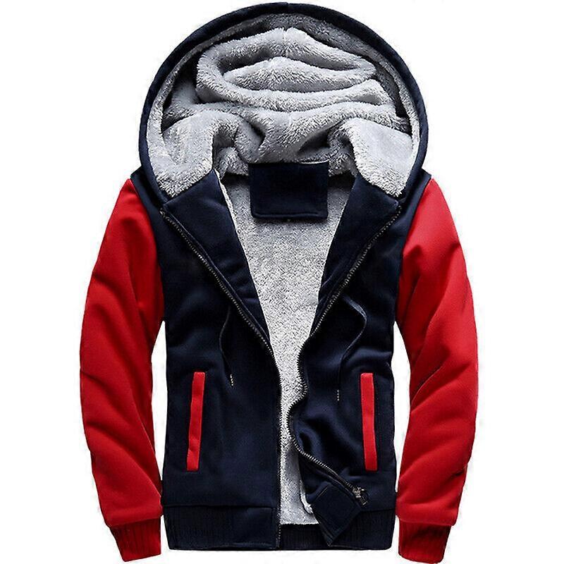Men Winter Fur Fleece Lined Coat Jacket Hoodies Hooded Casual Outwear Zip-Up