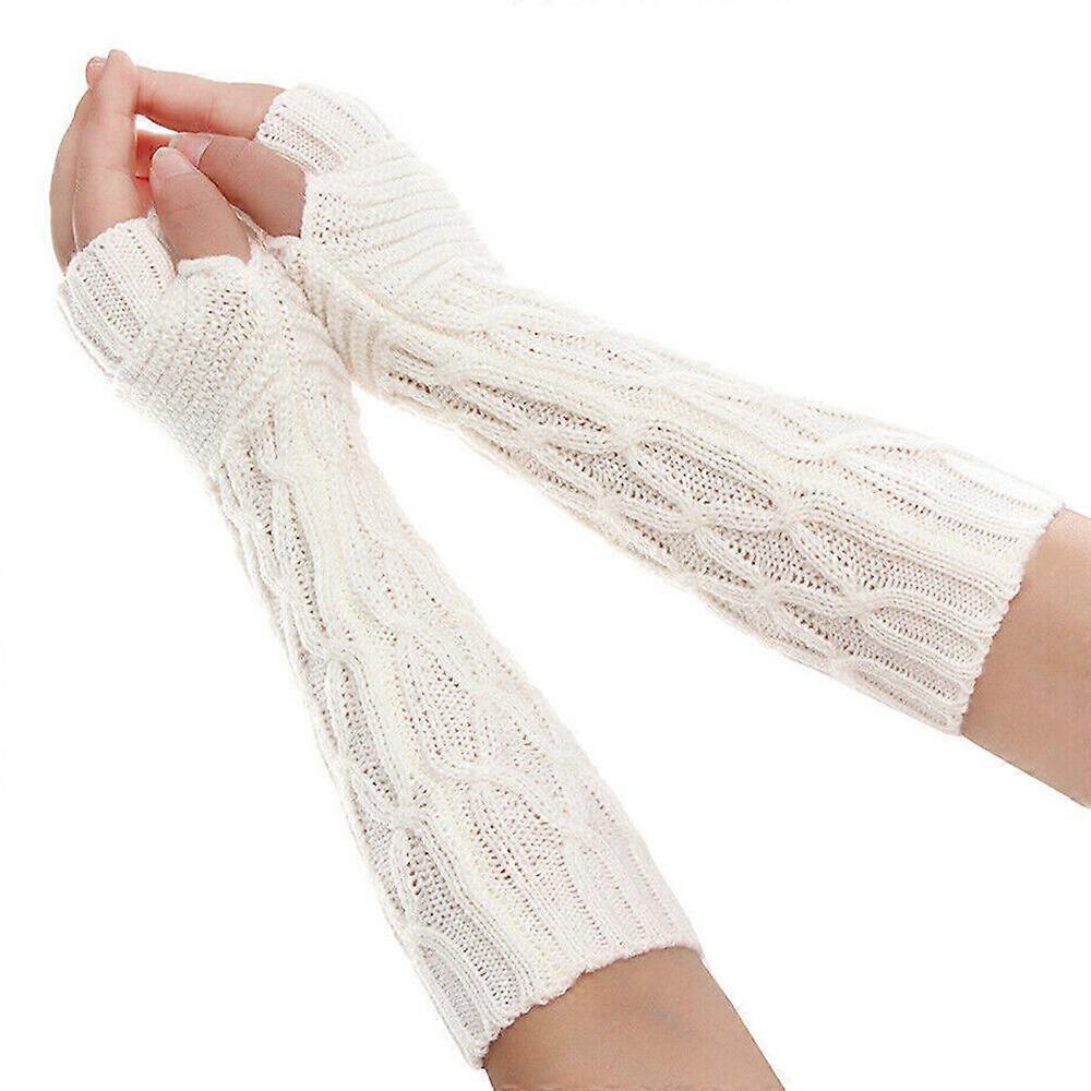 Womens Winter Warm Long Knitted Gloves Fingerless Mittens Soft Arm Hand Warmer