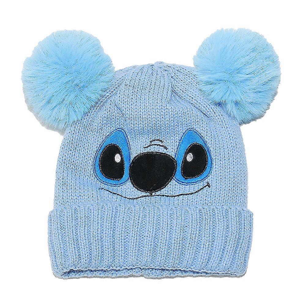 Stitch Kids Boys Girls Cute Casual Winter Warm Knitted Beanie Hat Disney Cartoon Cold Weather Cap M Size (56-58cm) Peacock Blue/Pink