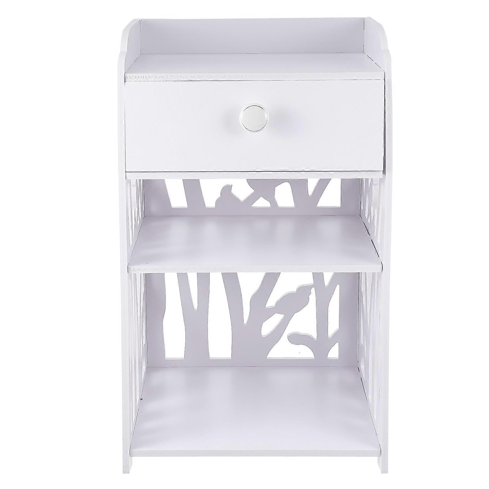 Nightstand Modern Nightstand Bedroom Use Wood Plastic Material White Hollow Carved Design Organizing Space 1Pcs