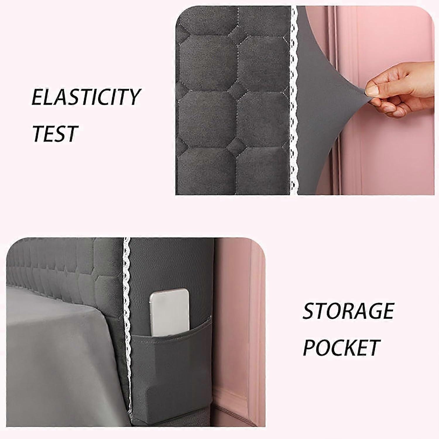 Milk Velvet Queen Headboard Protector Pink 220cm With Storage Pockets Universal Fit Anti Bump Padding