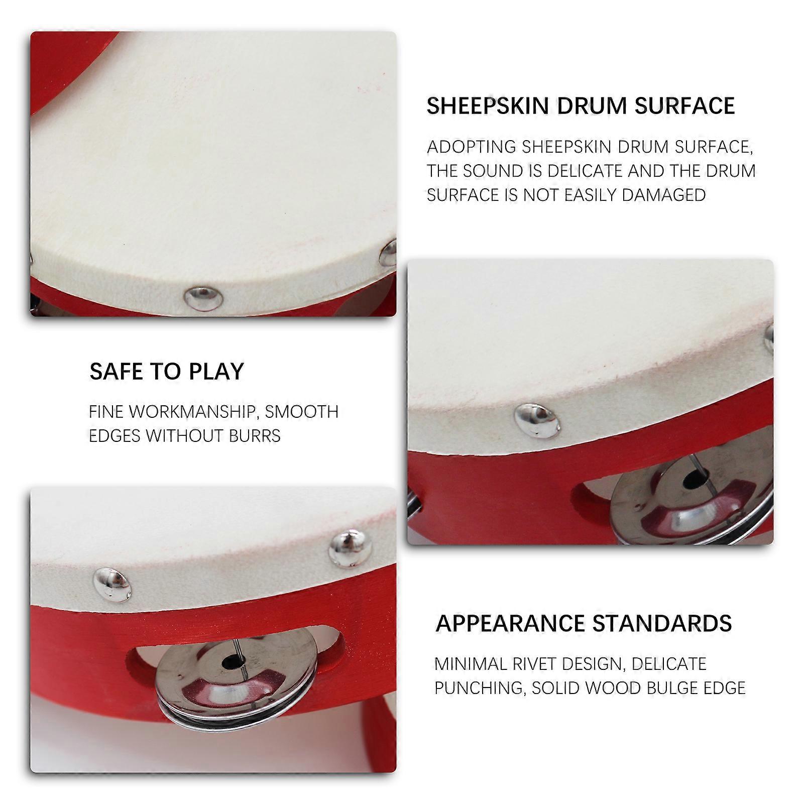 10 Inch Handheld Sheepskin Tambourine with 8 Metal Jingles