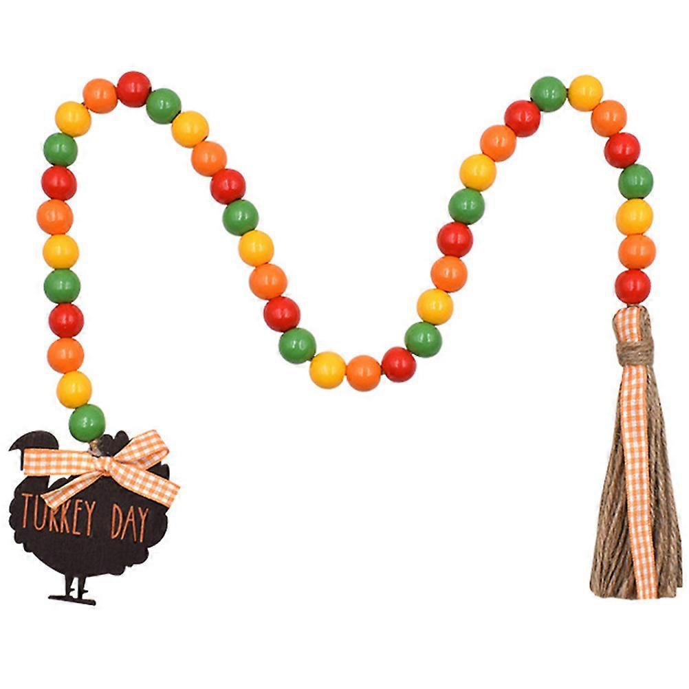 Wood Bead Garland Pendant for Holiday Decor 5Pcs Thanksgiving Tassel String