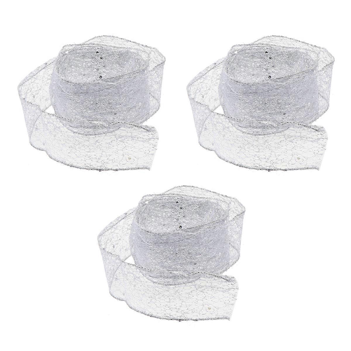 Holiday Ribbon Silver Gift Packaging Ties for Christmas Celebration Craft Accessories 3Pack