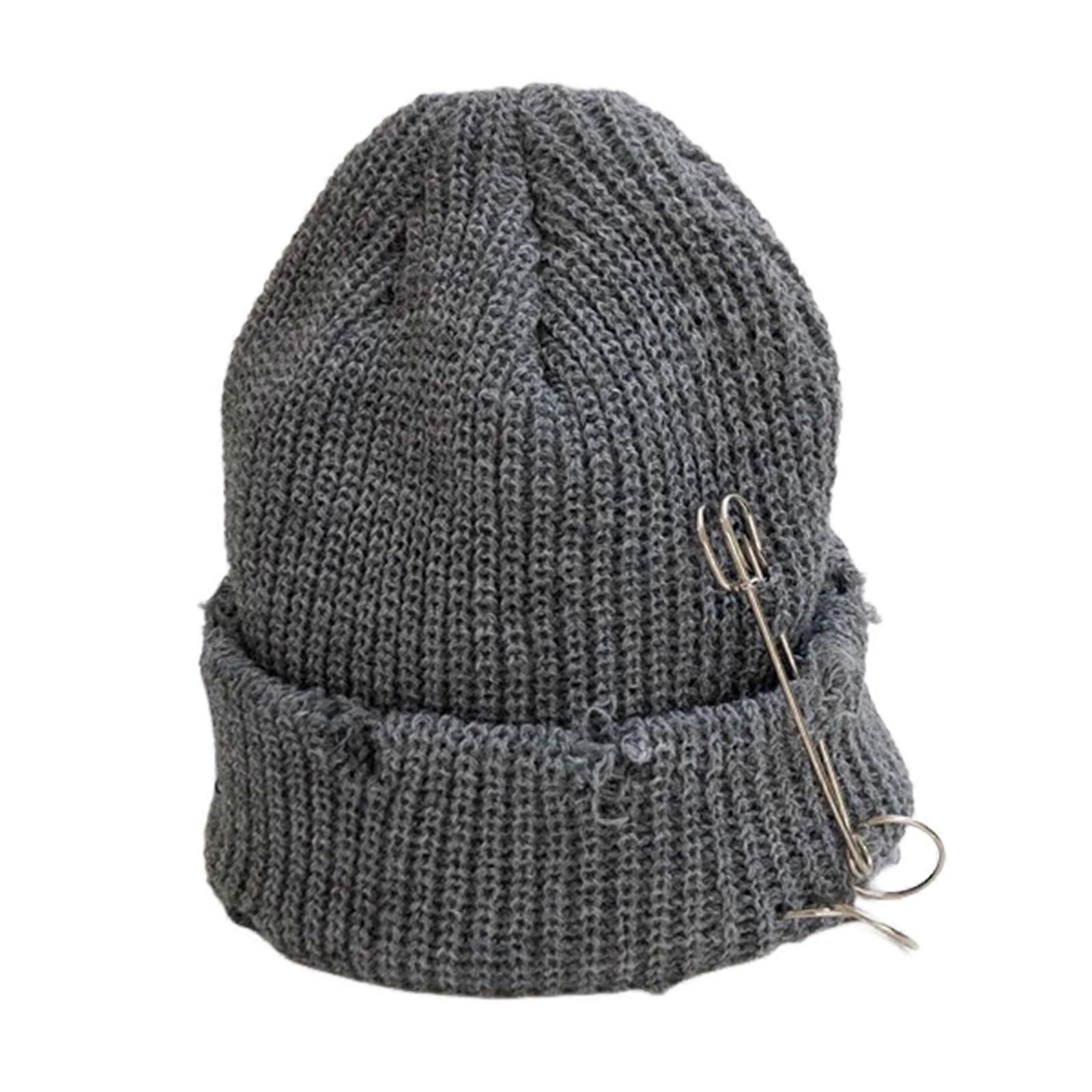 Men's Knit Beanie with Metal Pin Hip Hop Style Hem Design for Winter