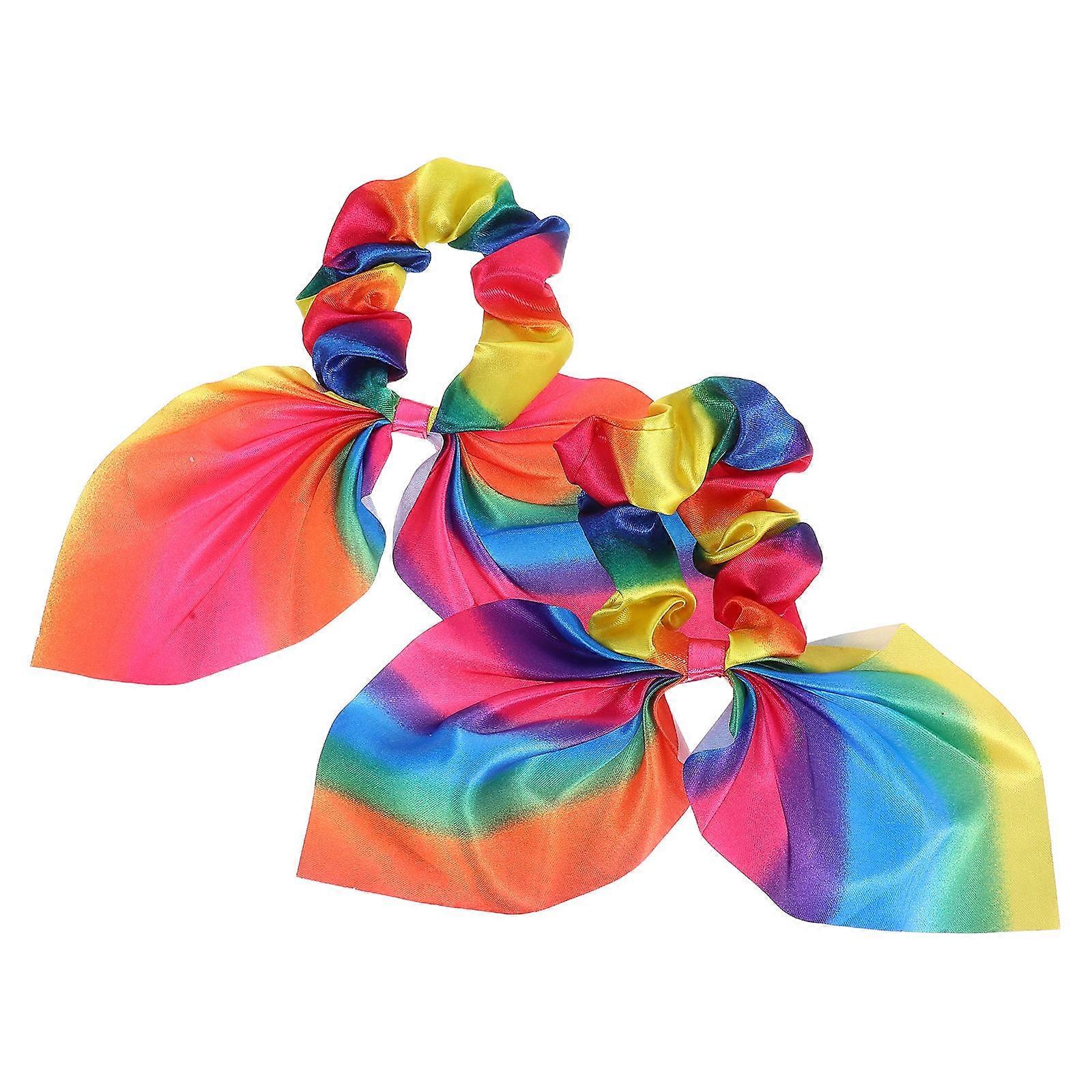 Rabbit Ear Hair Band for Hair Styling 2Pcs Rainbow Elastic Ponytail Holders