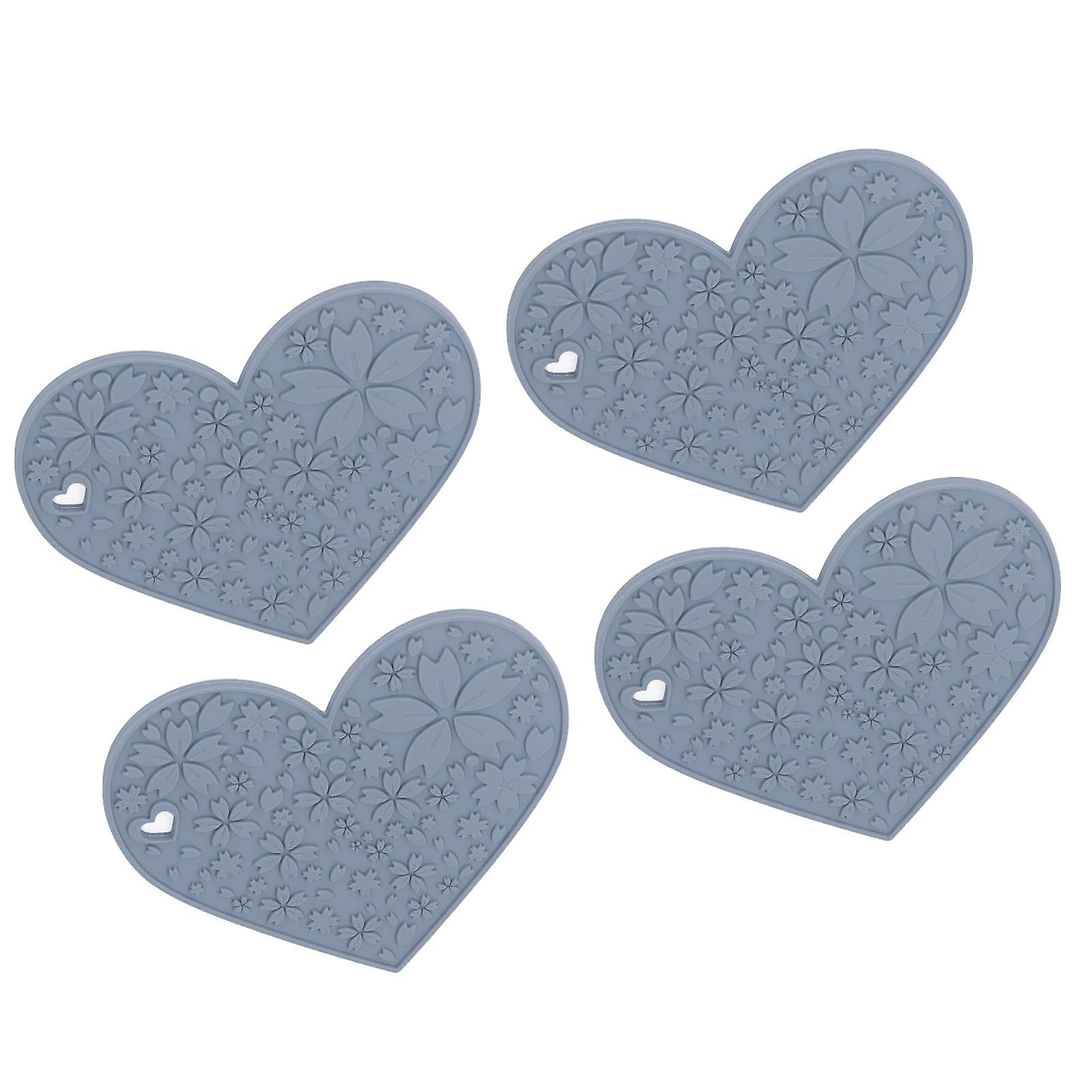 4PCS Heart Shaped Silicone Placemats 19x18.5cm Grey Non-Slip
