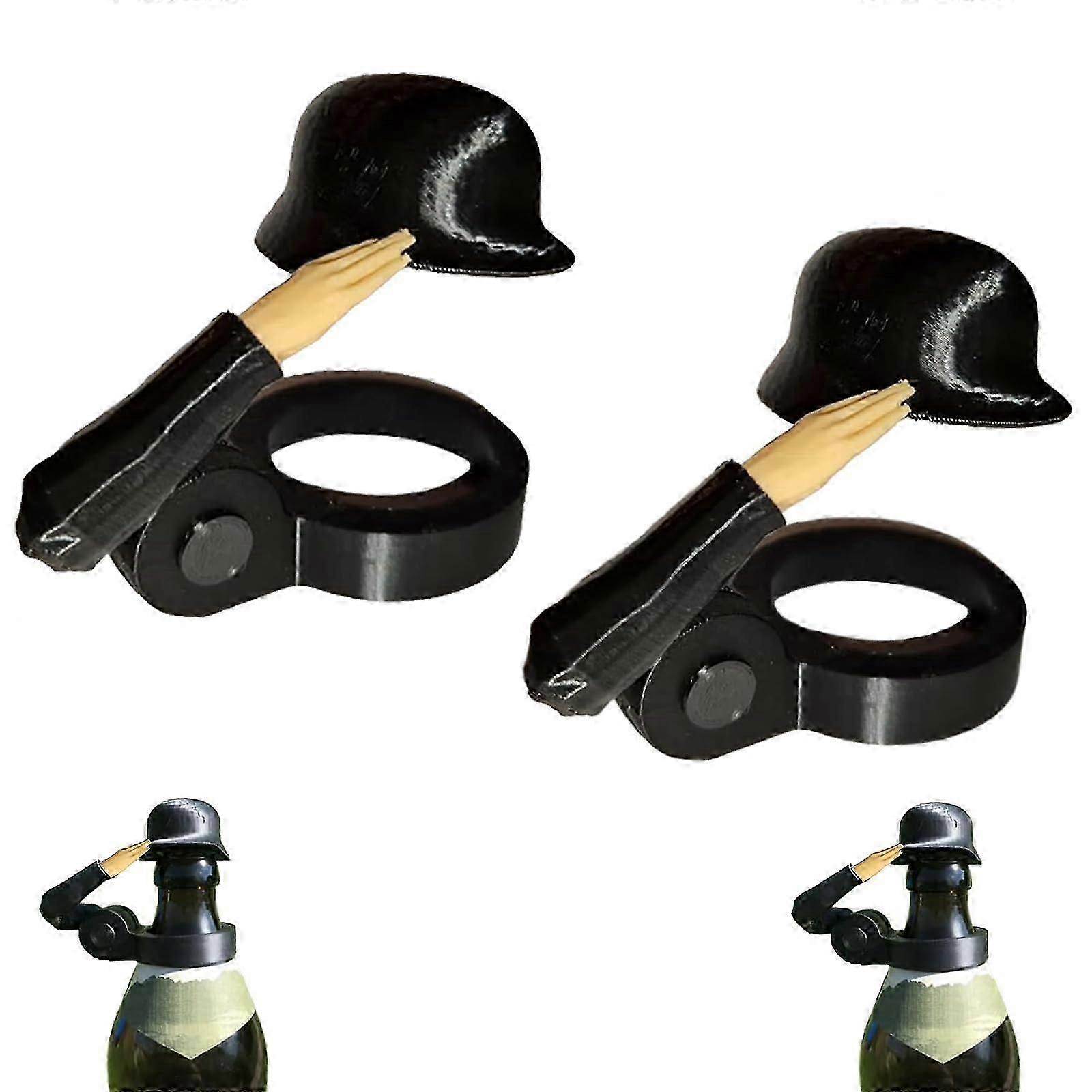Soldier Salute Bottle Caps, Funny Salute Soldier Helmet, Reusable (Pack of 2) Black