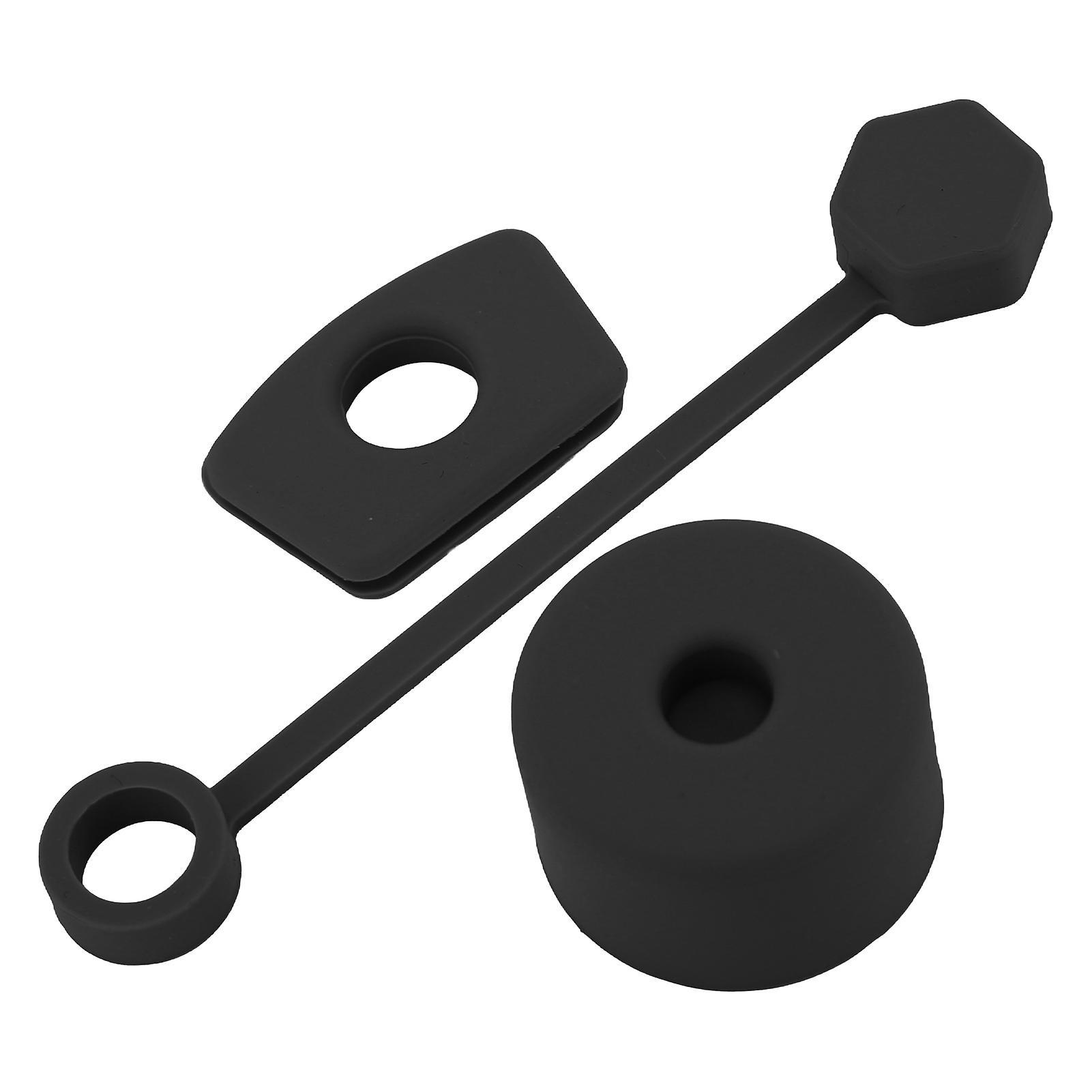 4-Pc Black Silicone Spill Proof Stopper Set with Straw Cover 40g