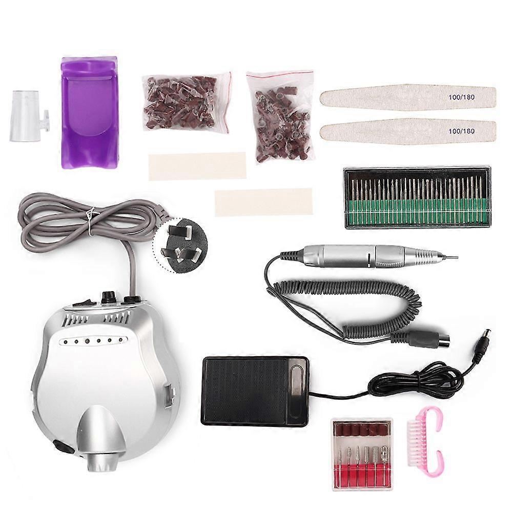 25000RPM MultiFunctional Electric Nail Drill Nail Polisher Grinding Machine Manicure Tool Set (Silver Machine Body)(AU Plug 220V)