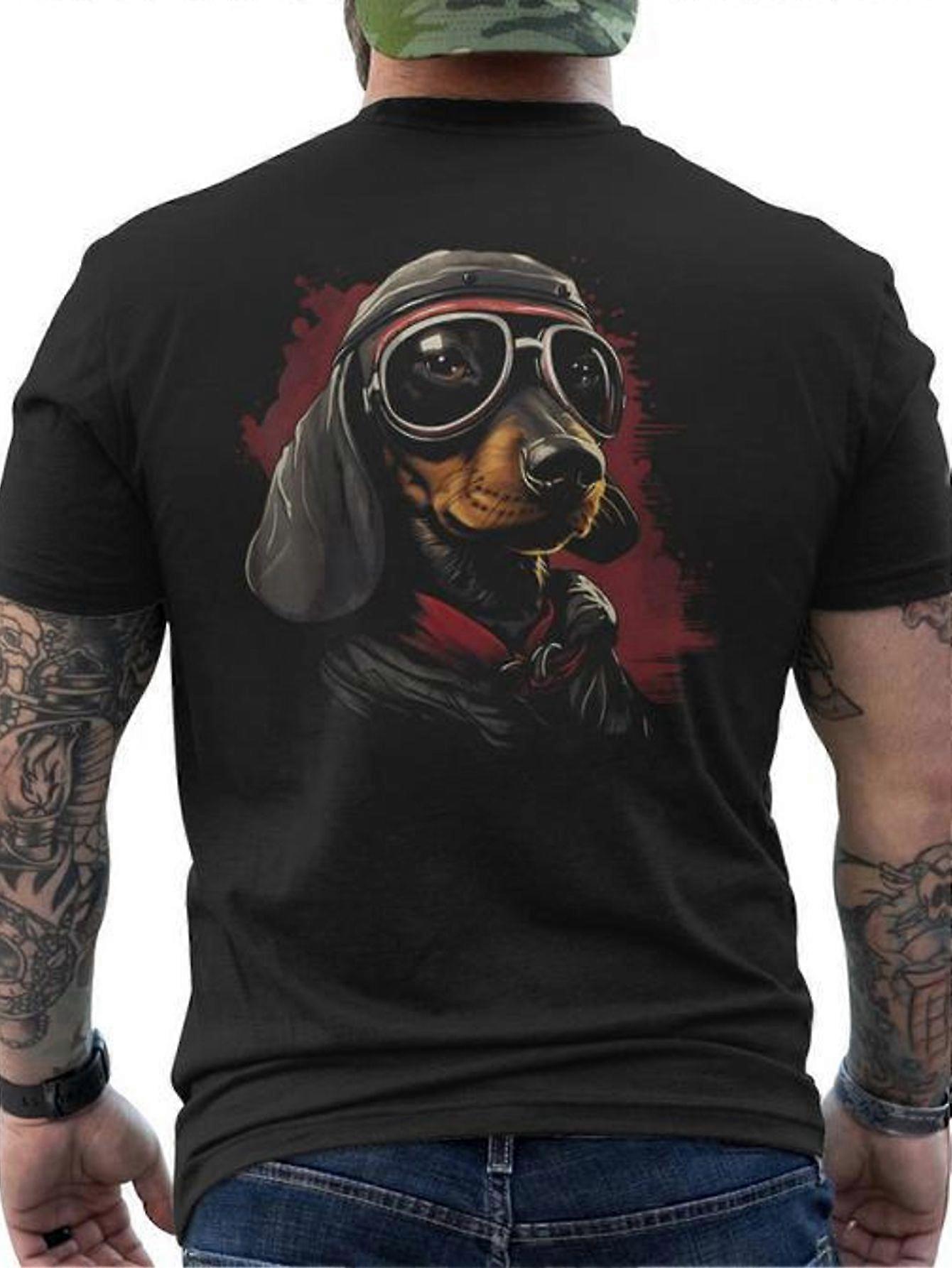 Men's Funny Motorcycle Dad T-Shirt - Back Print with Pilot Goggles - Soft Breathable Cotton Tee - Black Shirt for Biker Dads - Ide-qewtr199