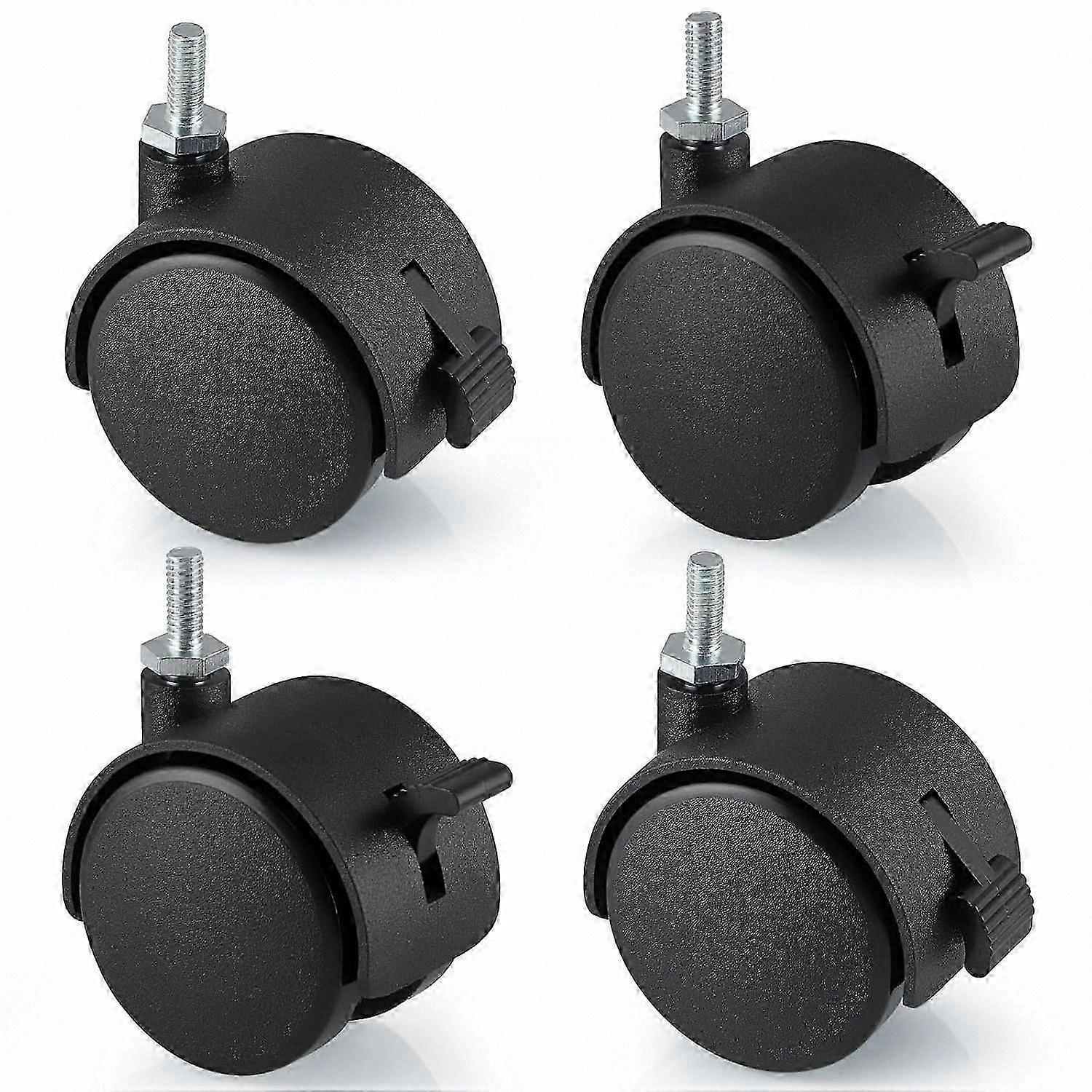4-Pack 50mm Nylon Swivel Caster Wheels with Brake, 6mm x 15mm Stem, Locking Small Furniture Casters for Smooth Mobility and Stability