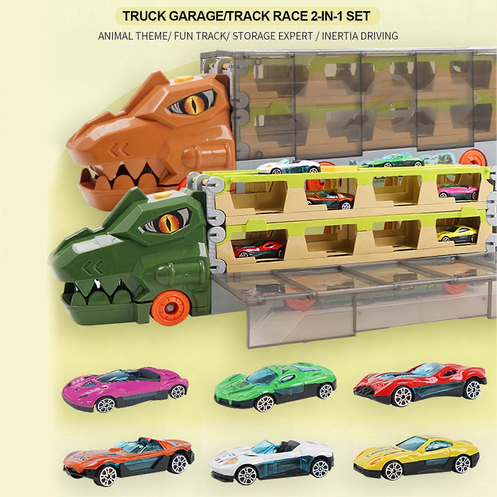 2-in-1 Foldable Green Truck Toy Set with 6 Alloy Cars 51x16x11cm