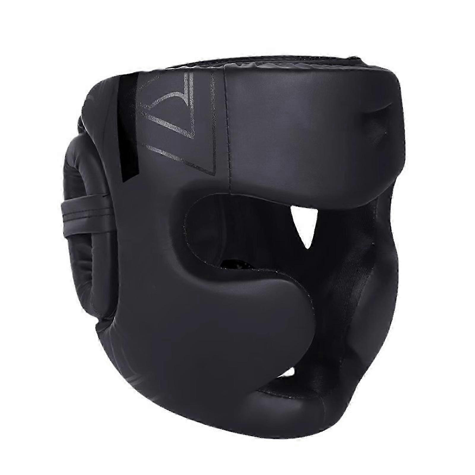 Full Covered Kick Boxing Helmets PU Leather Training Sparring Headgear Helmets Martial Art Headgear Protector Enduring black red