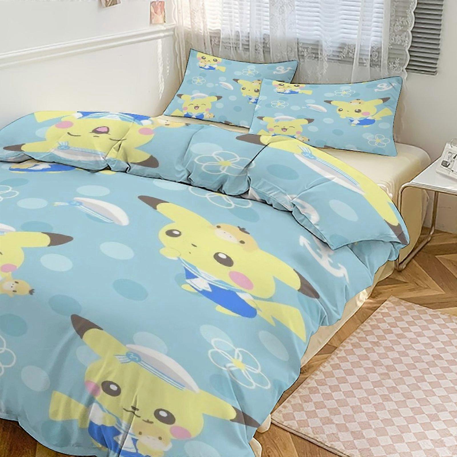 Bed Sheets g245 Pik_achu Print Bedding Set Pattern Duvet Cove Set 3 Pieces 1 Quilt Cover And 2 Pillowcases for Women Men Teens tq245